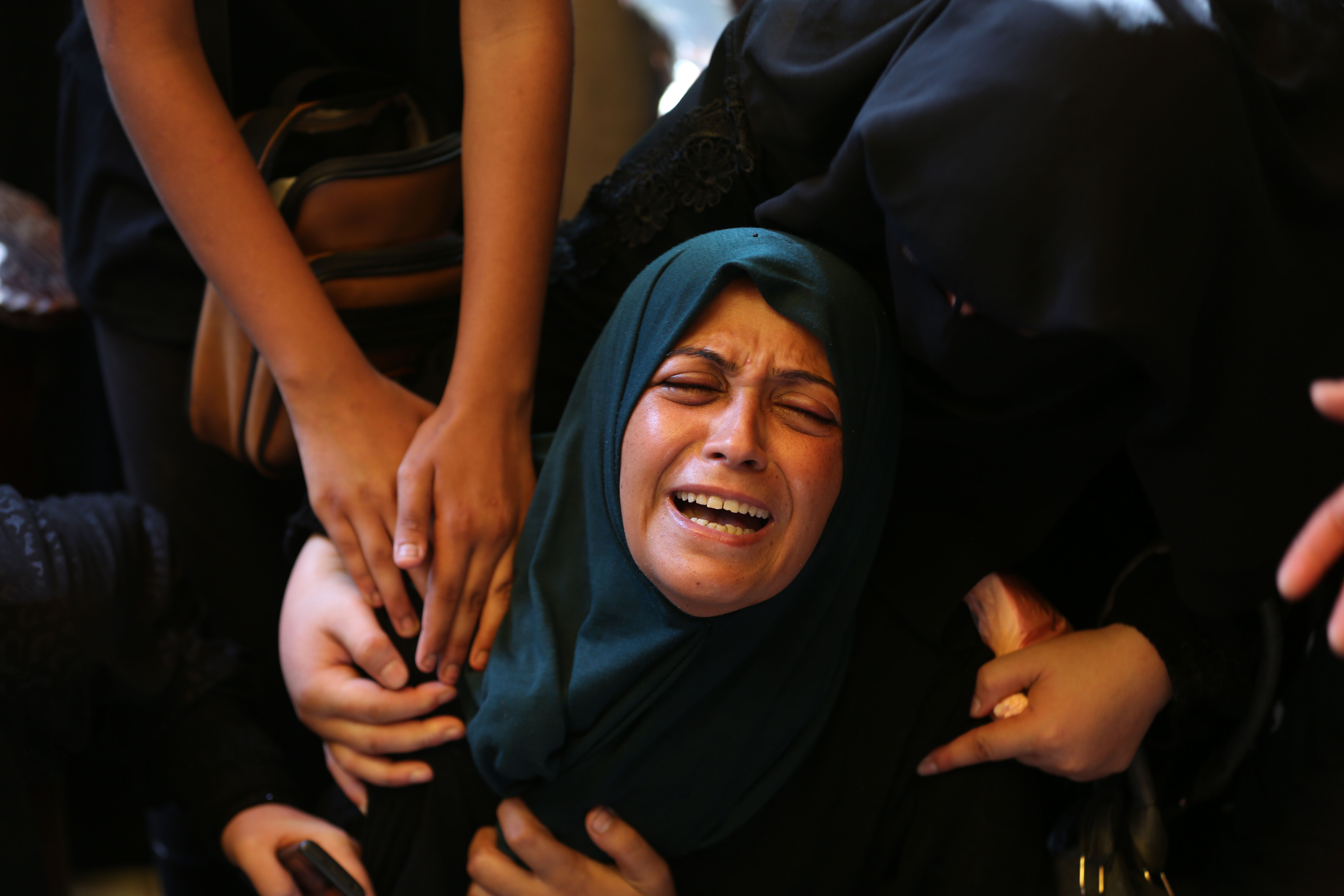 2024年8月13日,在加沙地带南部城市汗尤尼斯的纳赛尔病院,别称女子吊问以军热切遭难者。新华社发(哈树德·奥马尔摄)