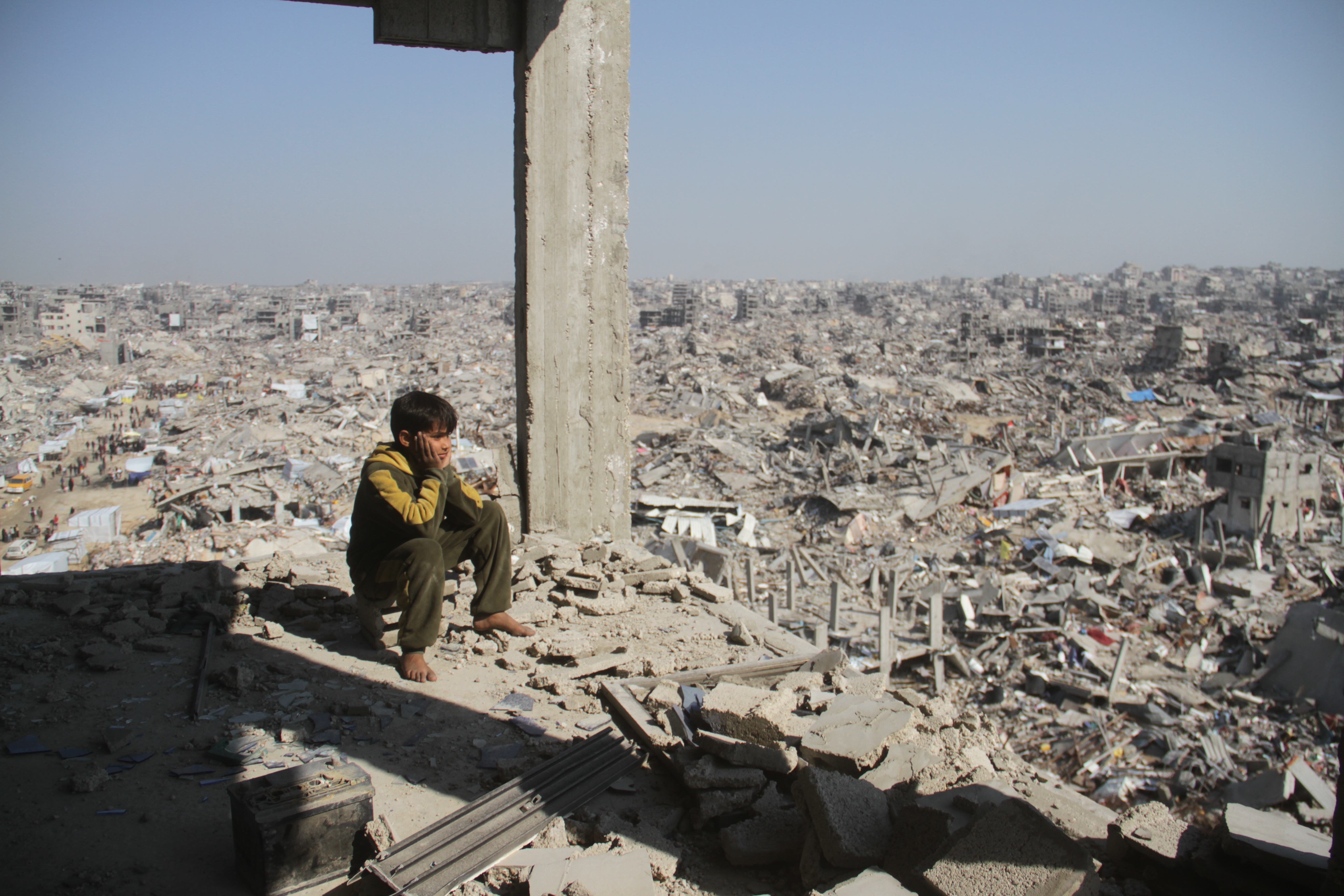 2025年1月29日,在加沙地带杰巴利耶黎民营,别称巴勒斯坦少年望向废地。新华社发(阿卜杜勒拉赫曼·萨拉马摄)